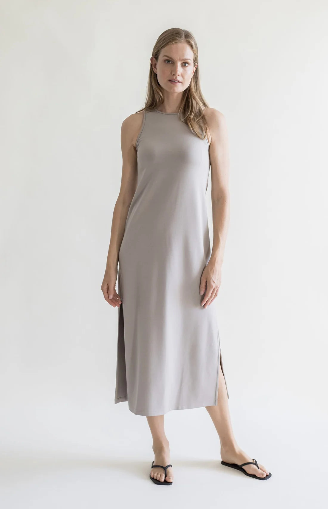 Linda-mekko on valmistettu miellyttävän pehmeästä viskoosista. Tyköistuvassa mekossa on racerback-leikkaus selässä ja halkiot sivusaumoissa.